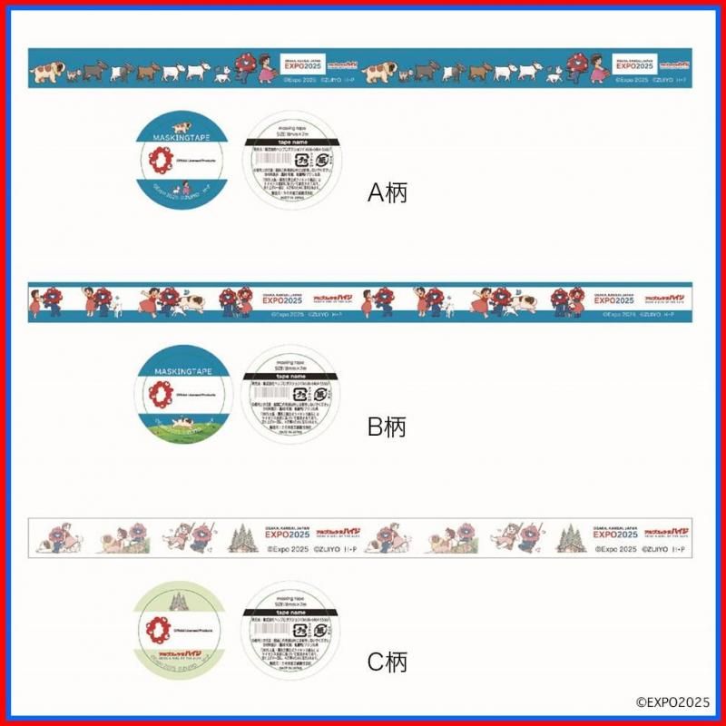 ミャクミャクとハイジが楽しく遊ぶ柄が楽しいマスキングテープです♪