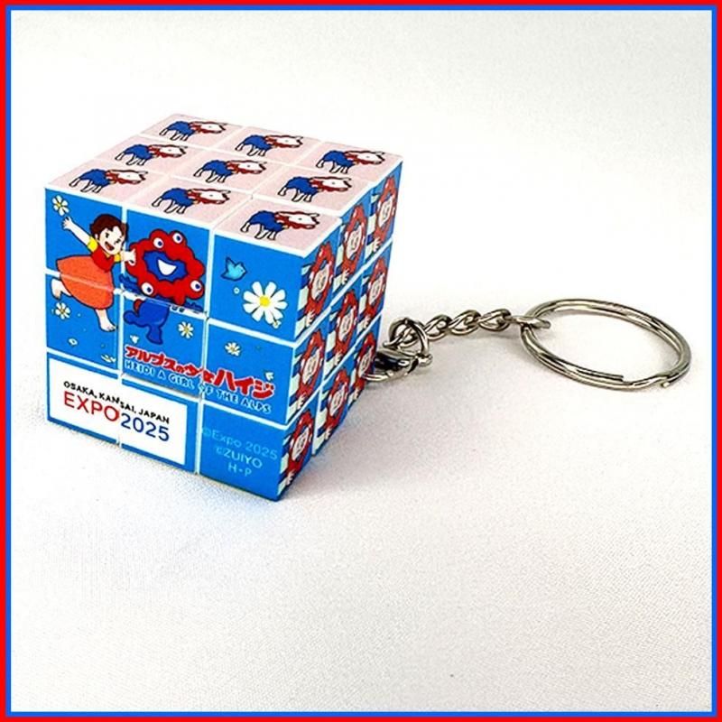 6面それぞれに、ミャクミャクやハイジたちがプリントされたキューブパズルです。