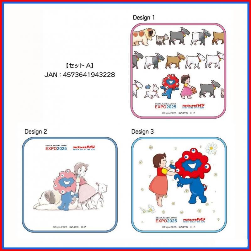 ハイジとミャクミャクが楽しく遊ぶシーンが可愛いミニサイズのタオルです。(3枚セット)